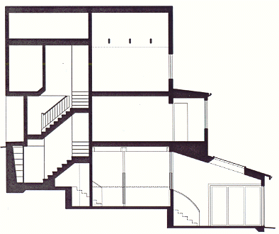 Remodel & Addition, San Francisco The program for this project was focused on the desire to integrate the garden into the living space of the house. Since the site slopes down from the front yard, the main living level of the house is approximately 15 feet above the rear yard. This vertical seperattion between the main living level and the rear yard created an obstacle for access to the rear yard. The ground floor (as seen from the rear yard) was entirely devoted to storage and did not have an interior stair up to the main living level, and thus was effectively remote from the living areas. The irony: this space-which acted mostly like a basement or crawl space-was potentially the largest volume in the house. The design solution proposed a new path to the yard through this volume by converting the ground floor level to living space. The path starts at a new interior stair at the front of the house, then proceeds towards the rear stepping down towards the garden. The last space, a 250 square foot addition, is at the garden level, where accordion style doors maximize the opening and view into the yard.